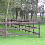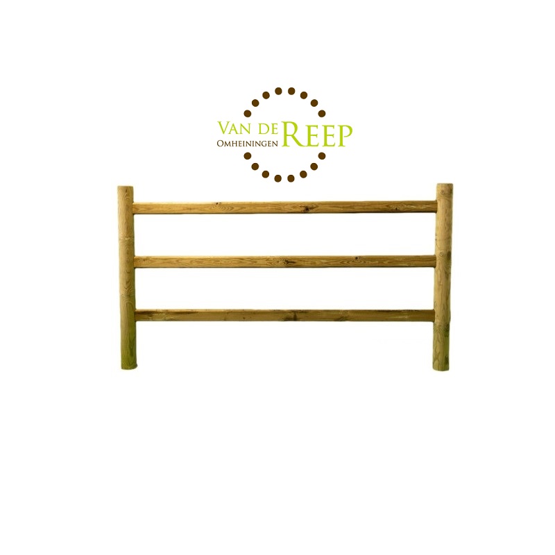 Deze doorsteek omheining kan bestaan uit rond gefreesde palen met een diameter van 12 cm, beschikbaar in lengtes van 200 of 220 cm. De palen zijn voorzien van twee of drie liggers van 45 x 95 mm, met een paalafstand van 2,5 of 3 meter.
