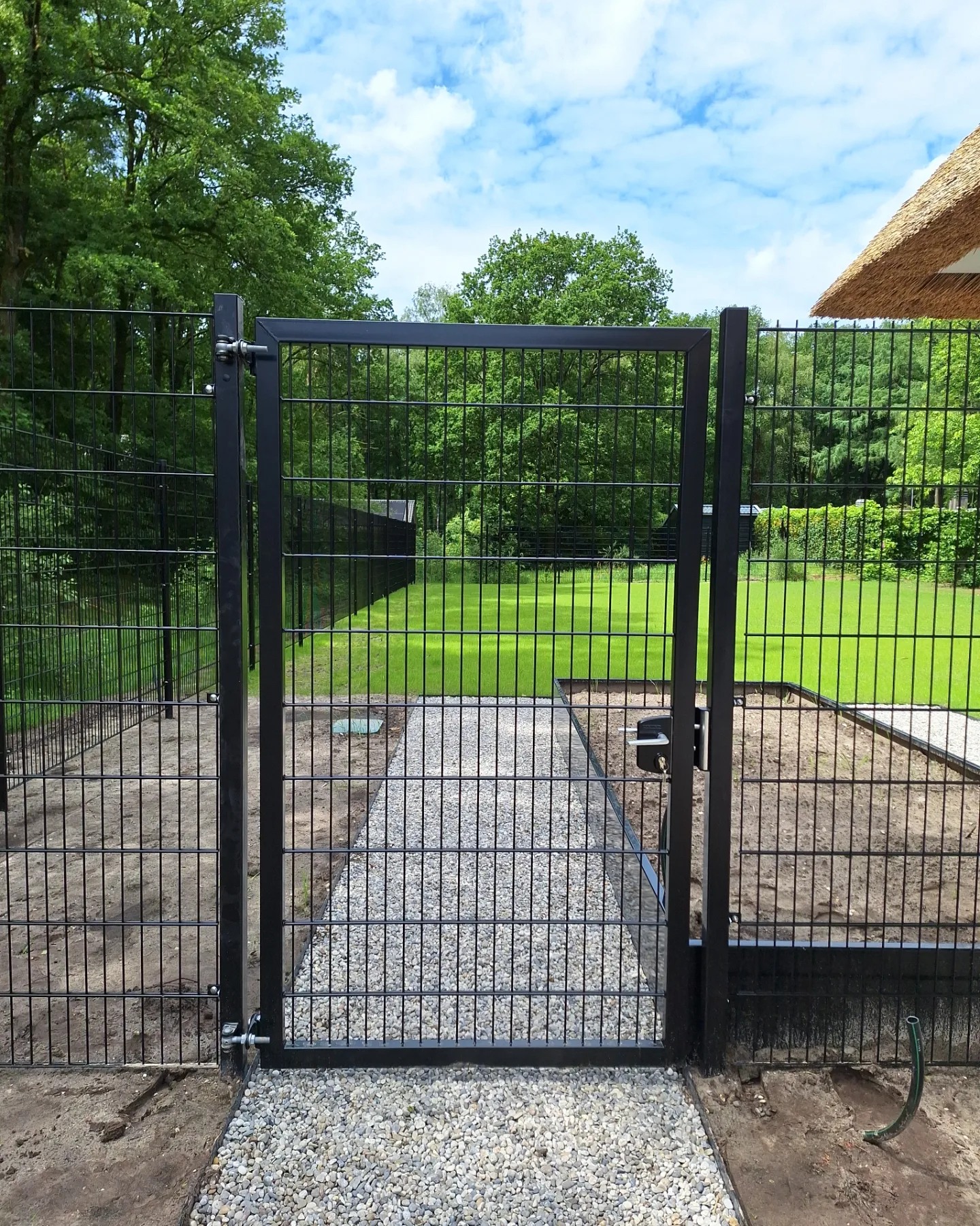De verzinkte en gecoate afwerking zorgt ervoor dat het hek niet roest en jarenlang mooi blijft.