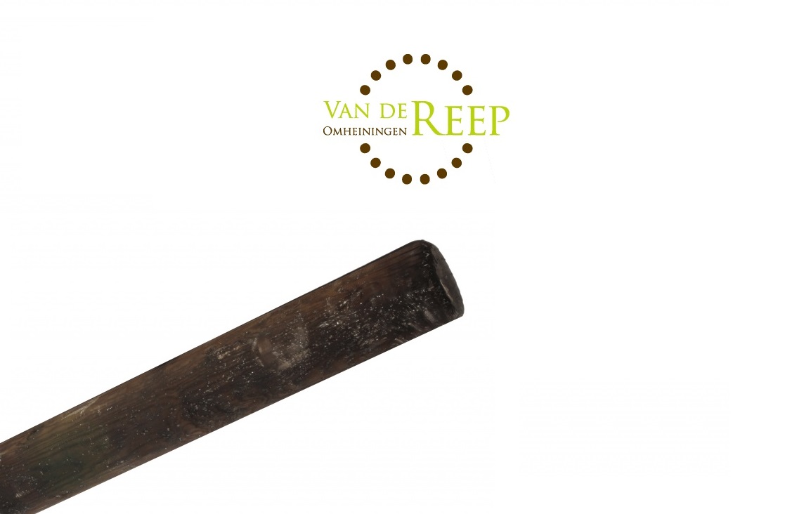 De weidepaal is rond gefreesd, en voorzien van een scherpe punt en gecroonde koprand.